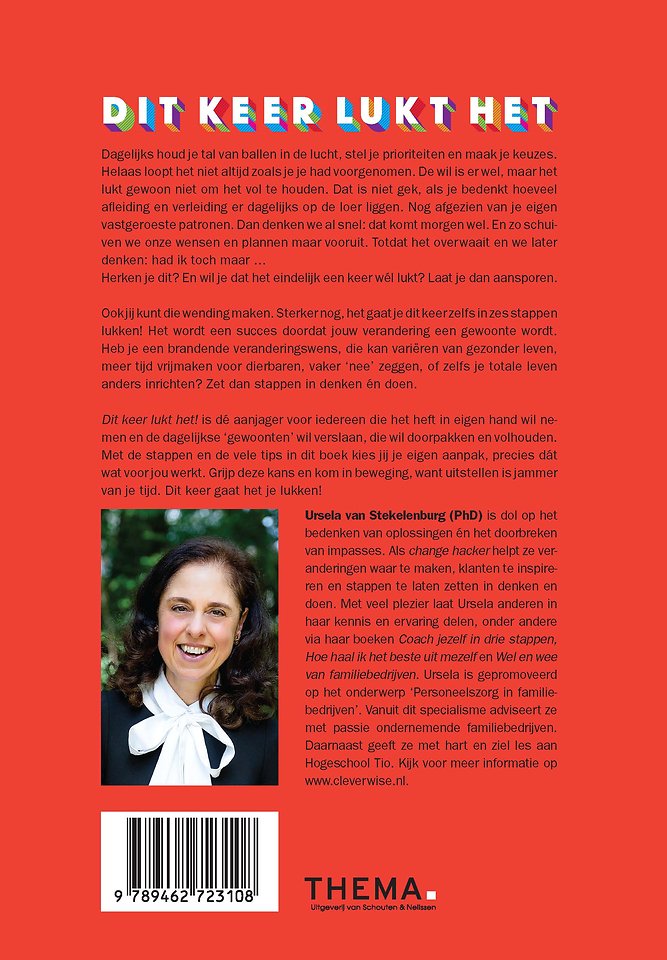 Dit keer lukt het is dé aanjager voor iedereen die het heft in eigen hand wil nemen en de dagelijkse ‘gewoontes’ wil verslaan; die wil doorpakken en volhouden. Met de stappen en de vele tips in dit boek kies jij je eigen aanpak, precies dát wat voor jou werkt. Grijp deze kans en kom in beweging, want uitstellen is jammer van je tijd. Dit keer gaat het je lukken!