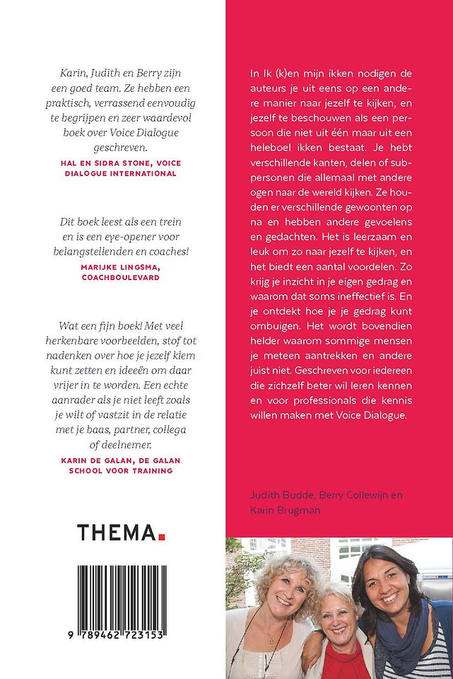 Meer over de auteursIn Ik (k)en mijn ikken nodigen de auteurs je uit eens op een andere manier naar jezelf te kijken, en jezelf te beschouwen als een persoon die niet uit één maar uit een heleboel ikken bestaat.