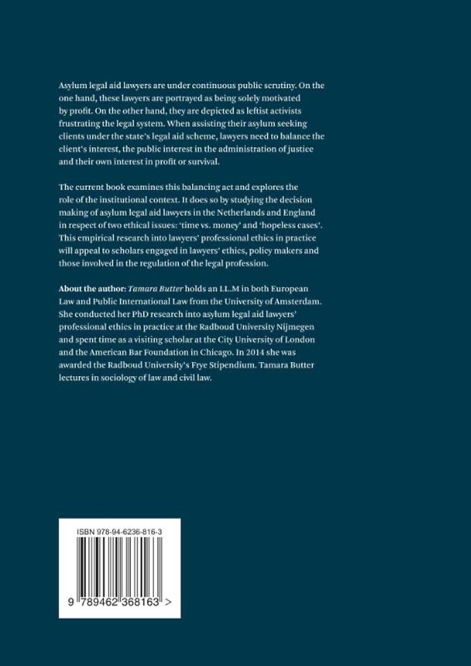 The current book examines this balancing act and explores the role of the institutional context. It does so by studying the decision making of asylum legal aid lawyers in the Netherlands and England in respect of two ethical issues: ‘time vs. money’ and ‘hopeless cases’.