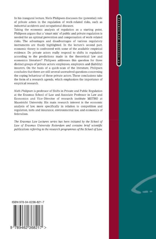 Taking the economic analysis of regulation as a starting point, Philipsen argues that a ‘smart mix’ of public and private regulation is needed for an optimal prevention and compensation of work-related risks. Some advantages and disadvantages of different regulatory instruments are discussed. In the second part of this lecture, economic theory is confronted with some of the available empirical evidence. Do private actors really respond to shifts in regulation according to the predictions made in the theoretical law and economics literature? Philipsen addresses this question for three groups of private actors: employees, employers and (liability) insurers.