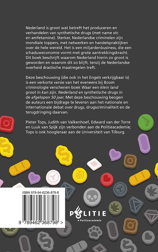 Deze beschouwing (die ook in het Engels verkrijgbaaris) is een verkorte versie van het eveneens bij Boom criminologie verschenen boek Waar een klein land groot in kan zijn. Nederland en synthetische drugs in de afgelopen 50 jaar. Met deze beschouwing beogen de auteurs een bijdrage te leveren aan het nationale en internationale debat over drugs, drugscriminaliteit en de terugdringing daarvan.