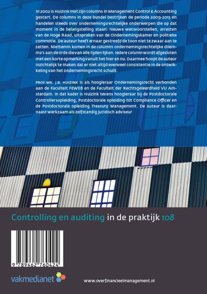 In 2002 is Huizink met zijn columns in Management Control & Accounting gestart. De columns in deze bundel bestrijken de periode 2009-2013 en handelen steeds over ondernemingsrechtelijke onderwerpen die op dat moment in de belangstelling staan: nieuwe wetsvoorstellen, arresten van de Hoge Raad, uitspraken van de Ondernemingskamer en politieke commotie.