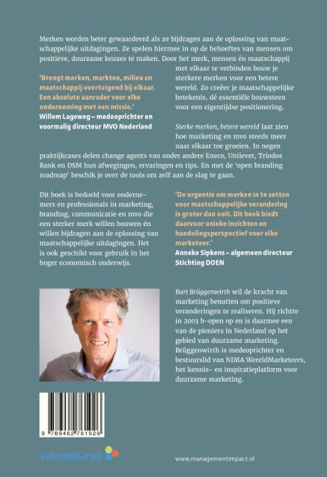 "Brengt merken, markten, milieu en maatschappij overtuigend bij elkaar. Een absolute aanrader voor elke onderneming met een missie." - Willem Lageweg, medeoprichter en voormalig directeur MVO Nederland