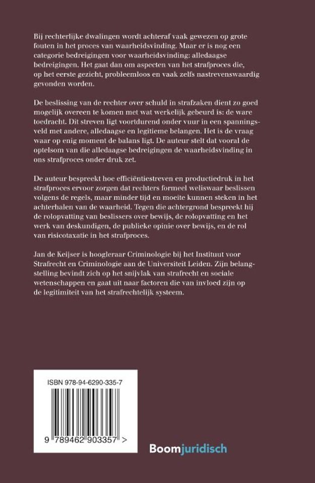Bij rechterlijke dwalingen wordt achteraf vaak gewezen op grote fouten in het proces van waarheidsvinding. Maar er is nog een categorie bedreigingen voor waarheidsvinding: alledaagse bedreigingen. Het gaat dan om aspecten van het strafproces die, op het eerste gezicht, probleemloos en vaak zelfs nastrevenswaardig gevonden worden.