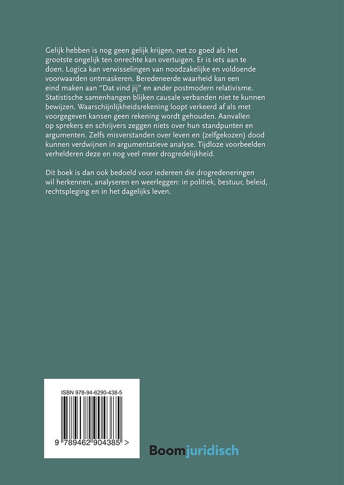 Dit boek is dan ook bedoeld voor iedereen die drogredeneringen wil herkennen, analyseren en weerleggen: in politiek, bestuur, beleid, rechtspleging en in het dagelijks leven.