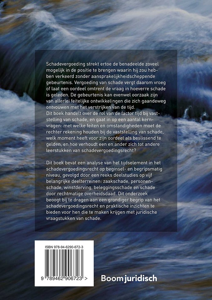 Dit boek bevat een analyse van het tijdselement in het schadevergoedingsrecht op beginsel- en begripsmatig niveau, gevolgd door een reeks deelstudies op vijf belangrijke deelterreinen: zaakschade, personenschade, winstderving, beleggingsschade en schade door rechtmatige overheidsdaad. De studie beoogt bij te dragen aan een grondiger begrip van het schadevergoedingsrecht en praktische inzichten te bieden voor hen die te maken krijgen met juridische vraagstukken van schade.