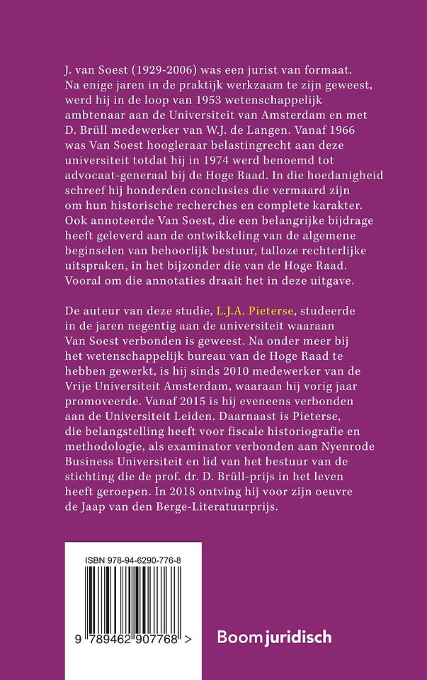 Ook annoteerde Van Soest, die een belangrijke bijdrage heeft geleverd aan de ontwikkeling van de algemene beginselen van behoorlijk bestuur, talloze rechterlijke uitspraken, in het bijzonder die van de Hoge Raad. Vooral om die annotaties draait het in deze uitgave.