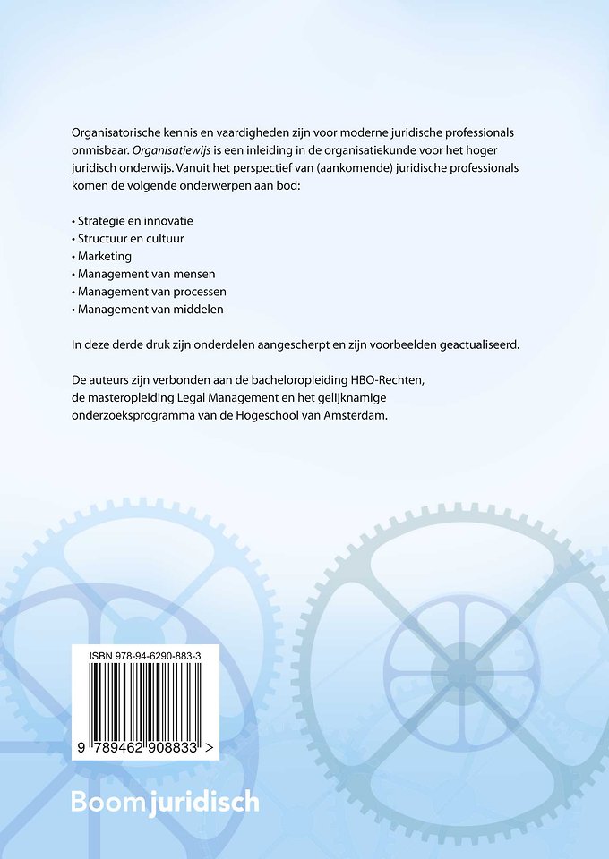 Organisatorische kennis en vaardigheden zijn voor moderne juridische professionals onmisbaar. Organisatiewijs is een inleiding in de organisatiekunde voor het hoger juridisch onderwijs.