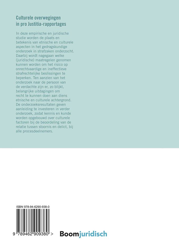 In deze empirische en juridische studie worden de plaats en betekenis van etnische en culturele aspecten in het gedragskundige onderzoek in strafzaken onderzocht. Daarbij wordt nagegaan welke (juridische) maatregelen genomen kunnen worden om het risico op onrechtvaardige en ineffectieve strafrechtelijke beslissingen te beperken.