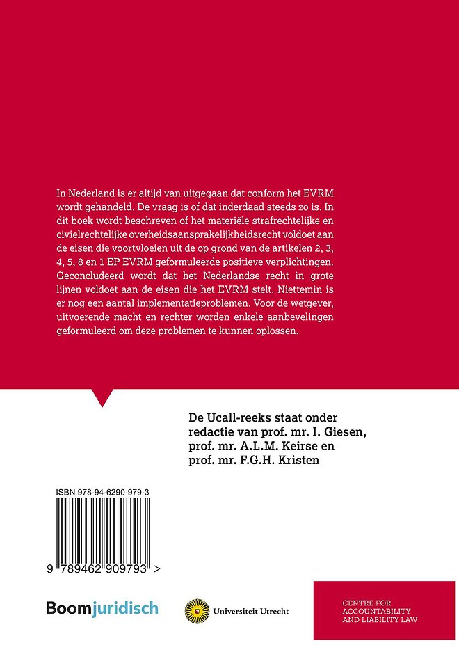 In Nederland is er altijd van uitgegaan dat conform het EVRM wordt gehandeld. De vraag is of dat inderdaad steeds zo is. In dit boek wordt beschreven of het materiële strafrechtelijke en civielrechtelijke overheidsaansprakelijkheidsrecht voldoet aan de eisen die voortvloeien uit de op grond van de artikelen 2, 3, 4, 5, 8 en 1 EP EVRM geformuleerde positieve verplichtingen. Geconcludeerd wordt dat het Nederlandse recht in grote lijnen voldoet aan de eisen die het EVRM stelt. Niettemin is er nog een aantal implementatieproblemen. Voor de wetgever, uitvoerende macht en rechter worden enkele aanbevelingen geformuleerd om deze problemen te kunnen oplossen.