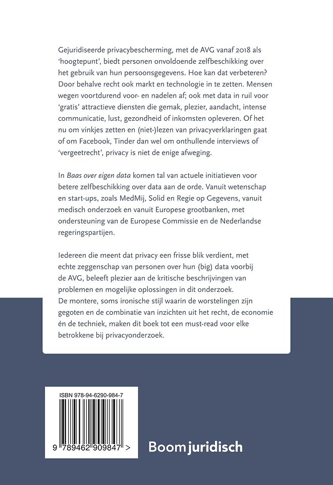 Iedereen die meent dat privacy een frisse blik verdient, met echte zeggenschap van personen over hun (big) data voorbij de AVG, beleeft plezier aan de kritische beschrijvingen van problemen en mogelijke oplossingen in dit onderzoek. De montere, soms ironische stijl waarin de worstelingen zijn gegoten en de combinatie van inzichten uit het recht, de economie én de techniek, maken dit boek tot een must-read voor elke betrokkene bij privacyonderzoek.