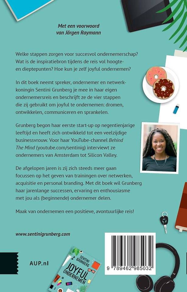In dit boek neemt spreker, ondernemer en netwerkkoningin Sentini Grunberg je mee in haar eigen ondernemersreis en de vier stappen die zij gebruikt om joyful te ondernemen: dromen, ontwikkelen, communiceren en sprankelen. Grunberg begon haar eerste startup op 19-jarige leeftijd en heeft zich ontwikkeld als een veelzijdige businessvrouw. Voor haar YouTube-channel 'Behind The Mind' interviewt ze ondernemers van Amsterdam tot Silicon Valley.