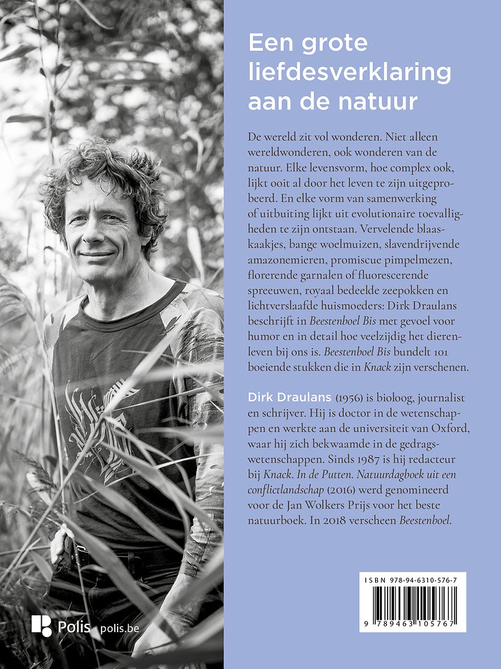 Vervelende blaaskaakjes, bange woelmuizen, slavendrijvende amazonemieren, promiscue pimpelmezen, florerende garnalen of fluorescerende spreeuwen, royaal bedeelde zeepokken en lichtverslaafde huismoeders: Dirk Draulans beschrijft in Beestenboel Bis met gevoel voor humor en in detail hoe veelzijdig het dierenleven bij ons is.