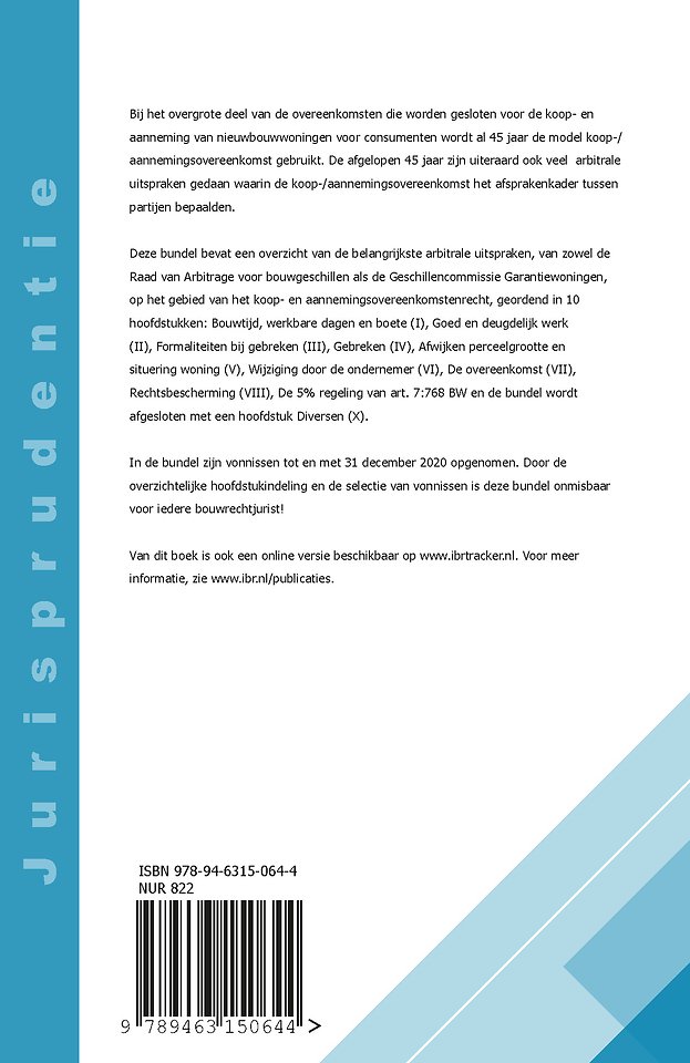 In de bundel zijn vonnissen tot en met 31 december 2020 opgenomen. Door de overzichtelijke hoofdstukindeling en de selectie van vonnissen is deze bundel onmisbaar voor iedere bouwrechtjurist!
