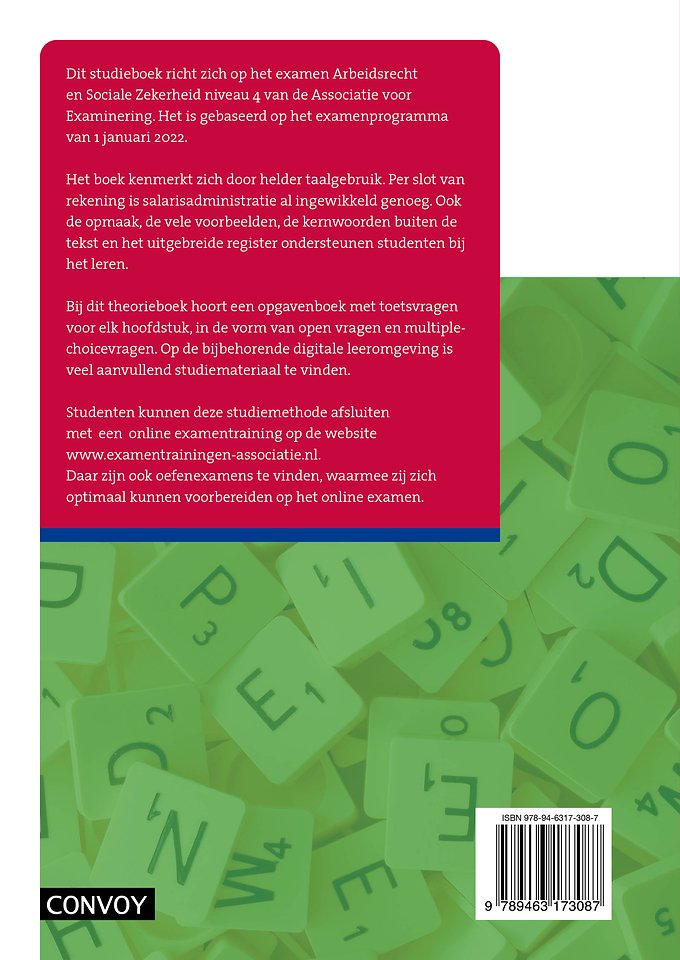Dit studieboek richt zich op het examen Arbeidsrecht en Sociale Zekerheid niveau 4 van de Associatie voor Examinering. Het is gebaseerd op het examenprogramma van 1 januari 2022.