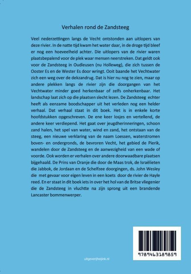 Veel nederzettingen langs de Vecht ontstonden aan uitlopers van deze rivier. In de natte tijd kwam het water daar, in de droge tijd bleef er nog een hoeveelheid achter. Die uitlopers van de rivier waren plaatsbepalend voor de plek waar mensen neerstreken. Dat geldt ook voor de Zandsteeg in Oudleusen (nu Holleweg ), die zich tussen de Ooster Es en de Wester Es door wringt. Ooit baande het Vechtwater zich een weg over de dekzandrug. Dat is hier nu nog te zien, maar op andere plekken langs de rivier zijn die doorgangen van het Vechtwater minder goed herkenbaar of zelfs onherkenbaar. Het landschap laat zich op die plaatsen slecht lezen. De Zandsteeg echter heeft als eenzame boodschapper uit het verleden nog een helder verhaal. Dat verhaal staat in dit boek. Het is in enkele korte hoofdstukken opgeschreven. De ene keer losjes en vertellend, de andere keer verdiepend.