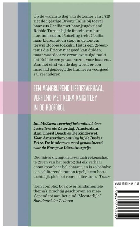 Komend seizoen zal Ian McEwan volop in de schijnwerpers staan, niet vanwege het verschijnen van een nieuwe roman, maar vanwege de verfilming van maar liefst drie (3!) van zijn meesterwerken. Aan Chesil Beach met Saoirse Ronan, De kinderwet met Emma Thompson en Het kind in de tijd met Benedict Cumberbatch. Iedereen herinnert zich natuurlijk de meeslepende verfilming van Boetekleed met Keira Knightley in de hoofdrol. Nu in handzame nieuwe uitgave in de fraaie reeks midprices.