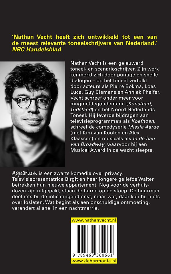 Nathan Vecht is een gelauwerd toneel- en scenarioschrijver van satirische stukken, altijd met een maatschappelijk-realistisch tintje. zijn werk kenmerkt zich door puntige en snelle dialogen – op het toneel vertolkt door acteurs als Pierre Bokma, Loes Luca, Guy Clemens en Anniek Pheifer -, maar als geschreven tekst is het zeker zo sterk en overtuigend. Vecht schreef stukken voor onder meer mugmetdegoudentand (Kunsthart, Gidsland), het Noord Nederlands Toneel en Bellevue Lunchtheater. Hij leverde bijdragen aan televisieprogramma’s als Koefnoen, schreef de comedyserie Missie Aarde (met Kim van Kooten en Alex Klaassen) en musicals als In de ban van Broadway, waarvoor hij een Musical Award in de wacht sleepte.