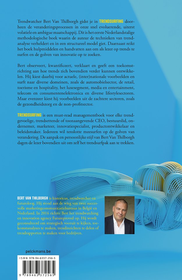 TRENDSURFING is een must-read managementboek voor elke trendgevoelige, trendsettende of toonaangevende CEO, bestuurslid, ondernemer, marketeer, innovatiespecialist, productontwikkelaar en beleidsmaker. Iedereen wil tenslotte meesurfen op de golven van verandering. De aanpak en persoonlijke stijl van Bert Van Thilborgh dagen de lezer bovendien uit om zelf het trendsurfpak aan te trekken.