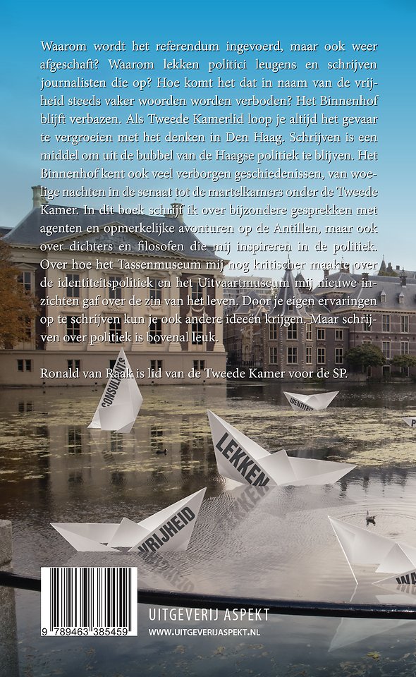 Waarom wordt het referendum ingevoerd, maar ook weer afgeschaft? Waarom lekken politici leugens en schrijven journalisten die op? Hoe komt het dat in naam van de vrijheid steeds vaker woorden worden verboden? Het Binnenhof blijft verbazen. Als Tweede Kamerlid loop je altijd het gevaar te vergroeien met het denken in Den Haag. Schrijven is een middel om uit de bubbel van de Haagse politiek te blijven. Het Binnenhof kent ook veel verborgen geschiedenissen, van woelige nachten in de senaat tot de martelkamers onder de Tweede Kamer.