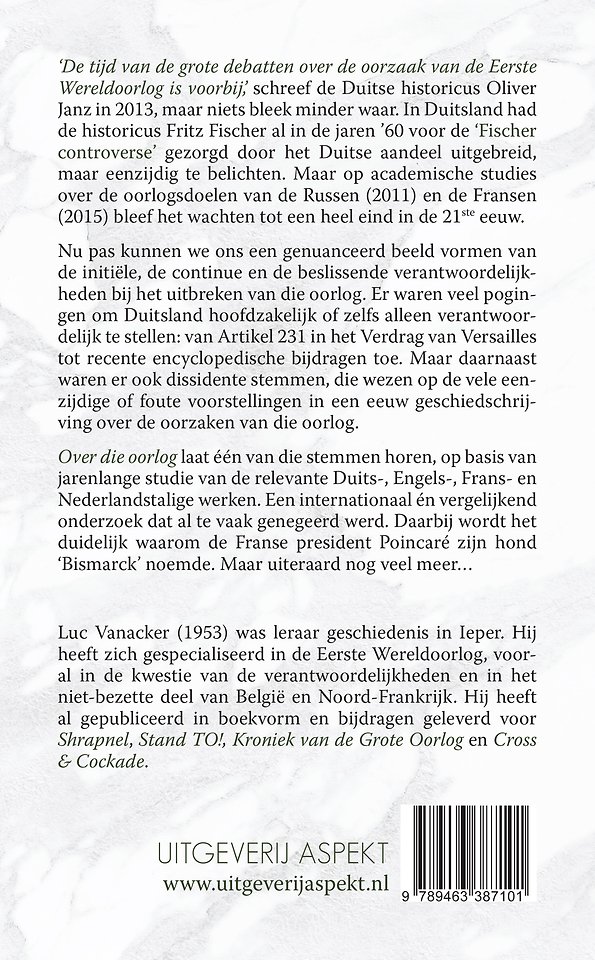 Over die oorlog laat één van die stemmen horen, op basis van jarenlange studie van de relevante Duits-, Engels-, Frans- en Nederlandstalige werken. Een internationaal én vergelijkend onderzoek dat al te vaak genegeerd werd. Daarbij wordt het duidelijk waarom de Franse president Poincaré zijn hond ‘Bismarck’ noemde. Maar uiteraard nog veel meer…