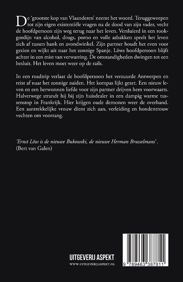 De ‘grootste kop van Vlaanderen’ neemt het woord. Teruggeworpen tot zijn eigen existentiële vragen na de dood van zijn vader, vecht de hoofdpersoon zijn weg terug naar het leven. Versluierd in een rookgordijn van alcohol, drugs, porno en volle asbakken speelt het leven zich af tussen bank en avondwinkel. Zijn partner houdt het even voor gezien en wijkt uit naar het zonnige Spanje. Löws hoofdpersoon blijft achter in een mist van verwarring. De omstandigheden dwingen tot een besluit. Het leven moet weer op de rails.