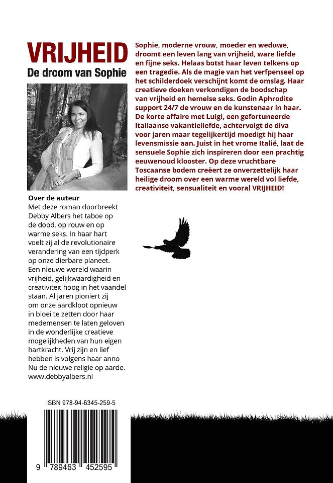 Met deze roman doorbreekt Debby Albers het taboe op de dood, op rouw en op warme seks. In haar hart voelt zij al de revolutionaire verandering van een tijdperk op onze dierbare planeet. Een nieuwe wereld waarin vrijheid, gelijkwaardigheid en creativiteit hoog in het vaandel staan. Al jaren pioniert zij om onze aardkloot opnieuw in bloei te zetten door haar medemensen te laten geloven in de wonderlijke creatieve mogelijkheden van hun eigen hartkracht. Vrij zijn en lief hebben is volgens haar anno Nu de nieuwe religie op aarde.