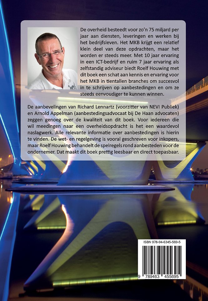 De overheid besteedt voor zo’n 75 miljard per jaar aan diensten, leveringen en werken bij het bedrijfsleven. Het MKB krijgt een relatief klein deel van deze opdrachten, maar het worden er steeds meer. Met 10 jaar ervaring in een ICT-bedrijf en ruim 7 jaar ervaring als zelfstandig adviseur biedt Roelf Houwing met dit boek een schat aan kennis en ervaring voor het MKB in tientallen branches om succesvol in te schrijven op aanbestedingen en om ze steeds eenvoudiger te kunnen winnen.