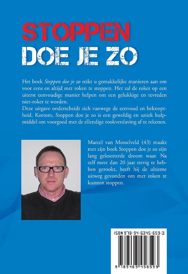 Marcel van Mosselveld (43) maakt met zijn boek Stoppen doe je zo zijn lang gekoesterde droom waar. Na zelf meer dan 20 jaar stevig te hebben gerookt, heeft hij de ultieme uitweg gevonden om met roken te kunnen stoppen.
