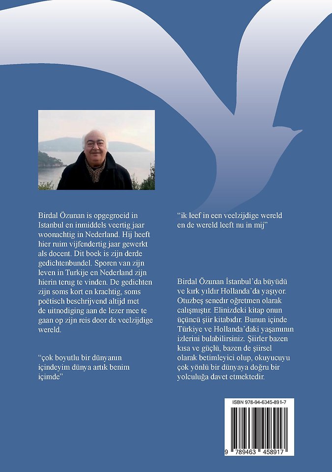 Birdal Özunan is opgegroeid in Istanbul en inmiddels veertig jaar woonachtig in Nederland. Hij heeft hier ruim vijfendertig jaar gewerkt als docent. Dit boek is zijn derde gedichtenbundel. Sporen van zijn leven in Turkije en Nederland zijn hierin terug te vinden. De gedichten zijn soms kort en krachtig, soms poëtisch beschrijvend altijd met de uitnodiging aan de lezer mee te gaan op zijn reis door de veelzijdige wereld.