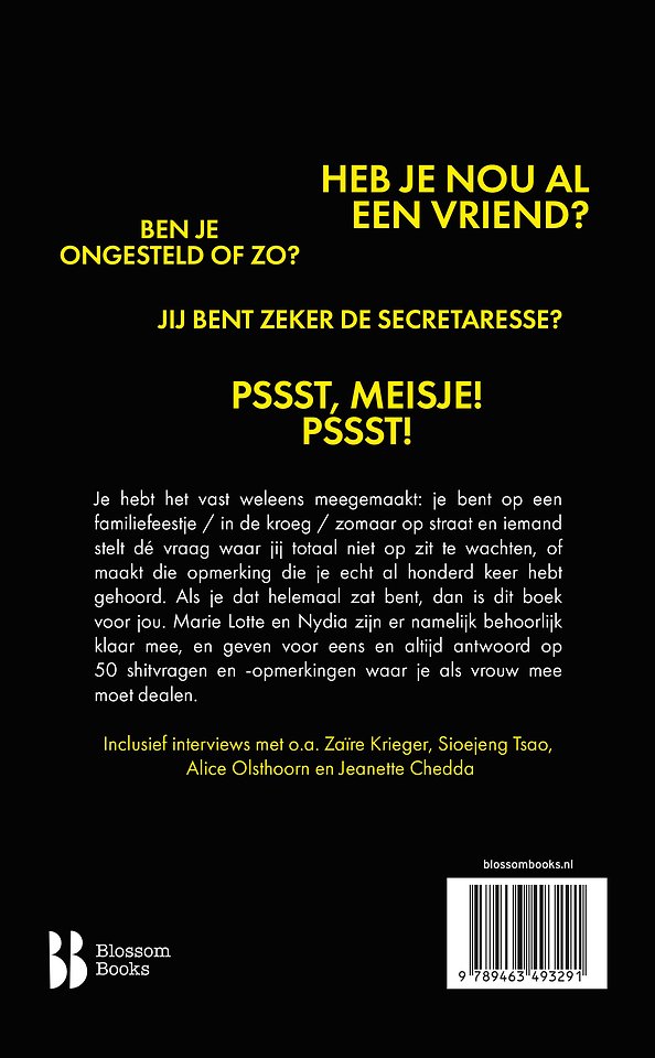In dit boek duiken Marie Lotte en Nydia in 50 ongepaste opmerkingen en vragen die vrouwen regelmatig naar hun hoofd geslingerd krijgen. Ben je ongesteld of zo? Zou je dat wel doen, nog een hap? Jij bent zeker de secretaresse! Had je maar geen rokje aan moet trekken. Van die opmerkingen waarvan je achteraf denkt: had ik maar iets scherps teruggezegd. Na het lezen van dit handboek sta je nooit meer met een mond vol tanden, want de auteurs leggen niet alleen uit wat er precies mis is, ze geven ook rake comebacks.