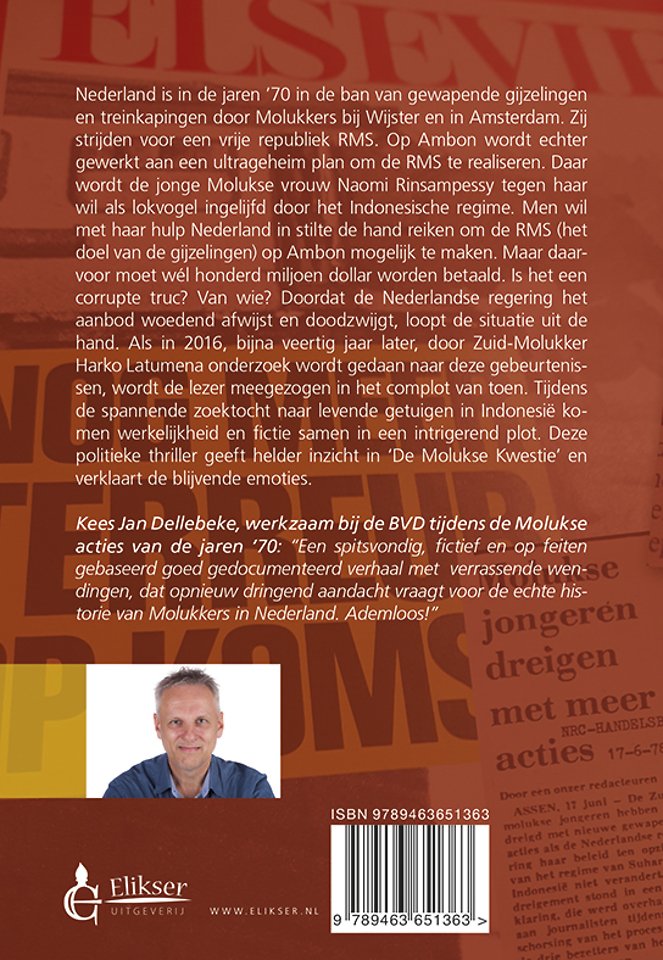 Nederland is in de jaren '70 in de ban van gewapende gijzelingen en treinkapingen door Molukkers bij Wijster en in Amsterdam. Zij strijden voor een vrije republiek RMS. Op Ambon wordt echter gewerkt aan een ultrageheim plan om de RMS te realiseren. Daar wordt de jonge Molukse vrouw Naomi Rinsampessy tegen haar wil als lokvogel ingelijfd door het Indonesische regime. Men wil met haar hulp Nederland in stilte de hand reiken om de RMS (het doel van de gijzelingen) op Ambon mogelijk te maken. Maar daarvoor moet wél honderd miljoen dollar worden betaald. Is het een corrupte truc? Van wie? Doordat de Nederlandse regering het aanbod woedend afwijst en doodzwijgt, loopt de situatie uit de hand. Als in 2016, bijna veertig jaar later, door Zuid-Molukker Harko Latumena onderzoek wordt gedaan naar deze gebeurtenissen, wordt de lezer meegezogen in het complot van toen. Tijdens de spannende zoektocht naar levende getuigen in Indonesië komen werkelijkheid en fictie samen in een intrigerend plot. Deze politieke thriller geeft helder inzicht in 'De Molukse Kwestie' en verklaart de blijvende emoties.