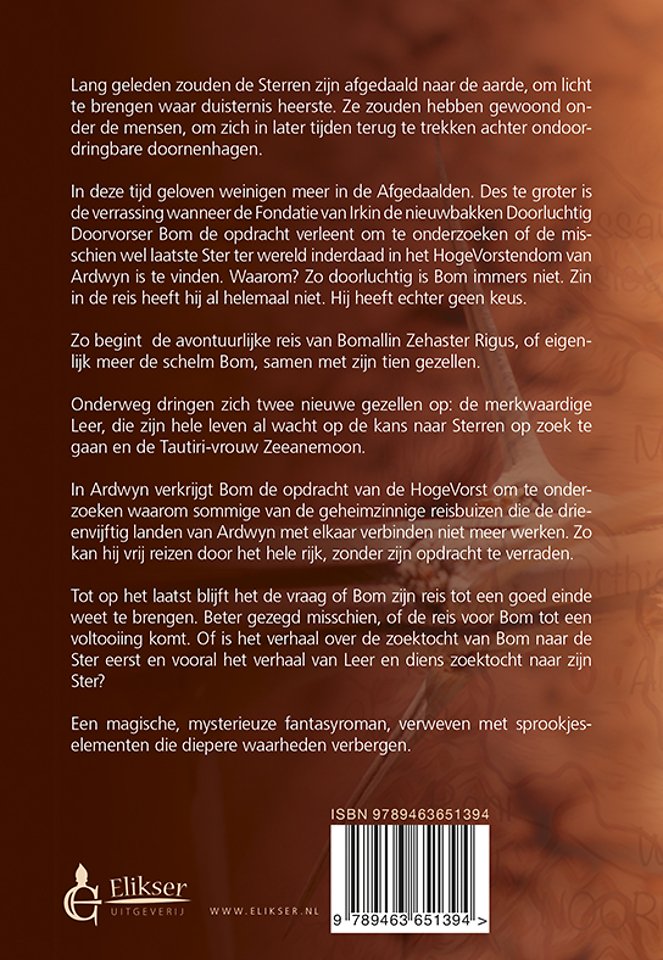 In deze tijd geloven weinigen meer in de Afgedaalden. Des te groter is de verrassing wanneer de Fondatie van Irkin de nieuwbakken Doorluchtig Doorvorser Bom de opdracht verleent om te onderzoeken of de misschien wel laatste Ster ter wereld inderdaad in het HogeVorstendom van Ardwyn is te vinden. Waarom? Zo doorluchtig is Bom immers niet. Zin in de reis heeft hij al helemaal niet. Hij heeft echter geen keus.