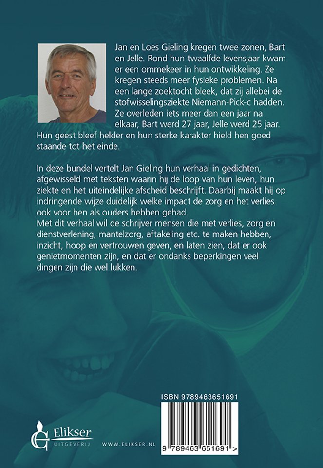 Jan en Loes Gieling kregen twee zonen, Bart en Jelle. Rond hun twaalfde levensjaar kwam er een ommekeer in hun ontwikkeling. Ze kregen steeds meer fysieke problemen. Na een lange zoektocht bleek, dat zij allebei de stofwisselingsziekte Niemann-Pick-c hadden. Ze overleden iets meer dan een jaar na elkaar, Bart werd 27 jaar, Jelle werd 25 jaar. Hun geest bleef helder en hun sterke karakter hield hen goed staande tot het einde.