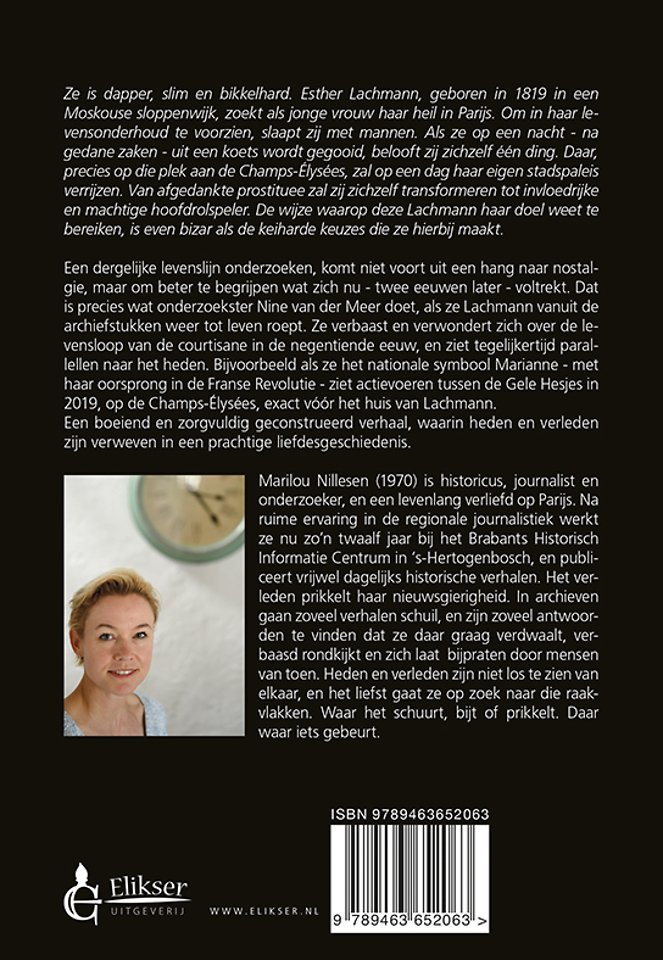 Marilou Nillesen (1970) is historicus, journalist en onderzoeker, en een levenlang verliefd op Parijs. Na ruime ervaring in de regionale journalistiek werkt ze nu zo'n twaalf jaar bij het voormalig rijksarchief in 's-Hertogenbosch, en publiceert vrijwel dagelijks historische verhalen. Het verleden prikkelt haar nieuwsgierigheid. In archieven gaan zoveel verhalen schuil, en zijn zoveel antwoorden te vinden dat ze daar graag verdwaalt, verbaasd rondkijkt en zich laat bijpraten door mensen van toen. Heden en verleden zijn niet los te zien van elkaar, en het liefst gaat ze op zoek naar die raakvlakken. Waar het schuurt, bijt of prikkelt. Daar waar iets gebeurt.