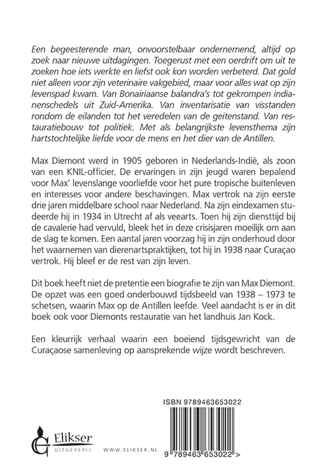 Dit boek heeft niet de pretentie een biografie te zijn van Max Diemont. De opzet was een goed onderbouwd tijdsbeeld van 1938 – 1973 te schetsen, waarin Max op de Antillen leefde. Veel aandacht is er in dit boek ook voor Diemonts restauratie van het landhuis Jan Kock.