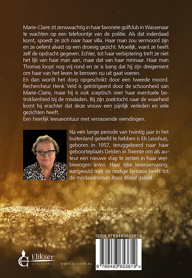 Na een lange periode van twintig jaar in het buitenland geleefd te hebben is Els Leushuis, geboren in 1957, teruggekeerd naar haar geboorteplaats Delden in Twente om als auteur een nieuwe stap te zetten in haar veelbewogen leven. Haar rijke levenservaring, aangevuld met de nodige fantasie heeft tot de misdaadroman Boos Bloed geleid.