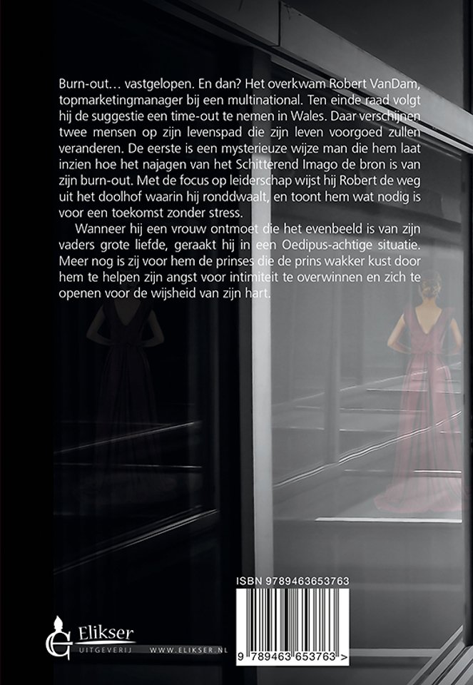Burn-out… vastgelopen. En dan? Het overkwam Ro-bert VanDam, topmarketingmanager bij een multina-tional. Ten einde raad volgt hij de suggestie een time-out te nemen in Wales. Daar verschijnen twee mensen op zijn levenspad die zijn leven voorgoed zullen veranderen. De eerste is een mysterieuze wijze man die hem laat inzien hoe het najagen van het Schitterend Imago de bron is van zijn burn-out. Met de focus op leiderschap wijst hij Robert de weg uit het doolhof waarin hij ronddwaalt, en toont hem wat nodig is voor een toekomst zonder stress.