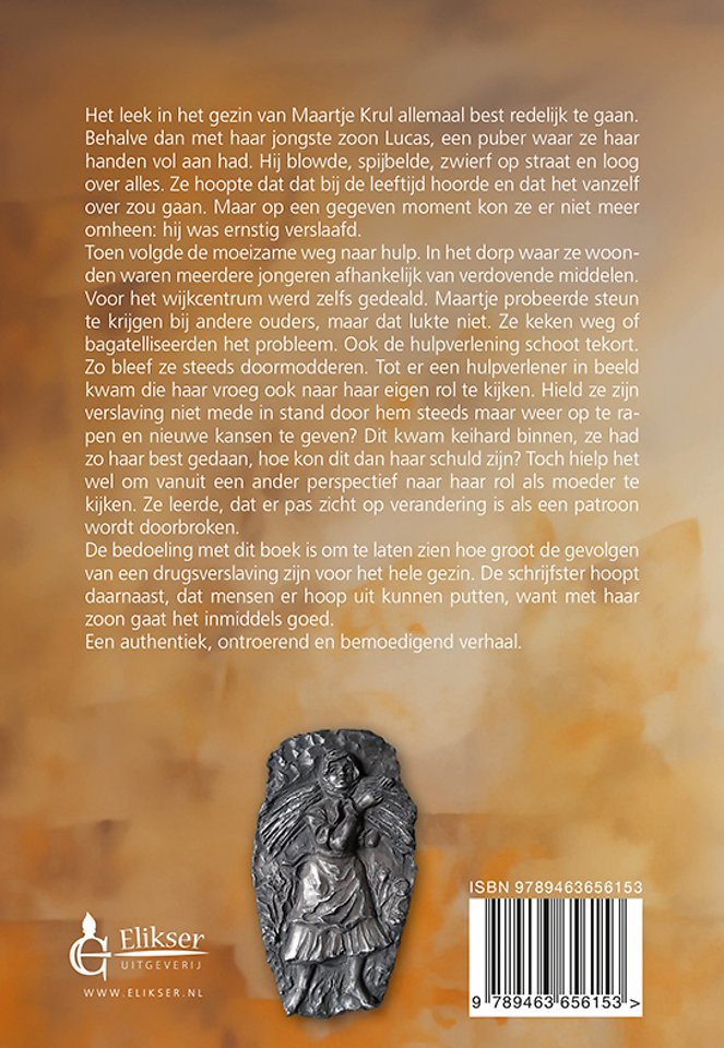 Het leek in het gezin van Maartje Krul allemaal best redelijk te gaan. Behalve dan met haar jongste zoon Lucas, een puber waar ze haar handen vol aan had. Hij blowde, spijbelde, zwierf op straat en loog over alles. Ze hoopte dat dat bij de leeftijd hoorde en dat het vanzelf over zou gaan. Maar op een gegeven moment kon ze er niet meer omheen: hij was ernstig verslaafd.