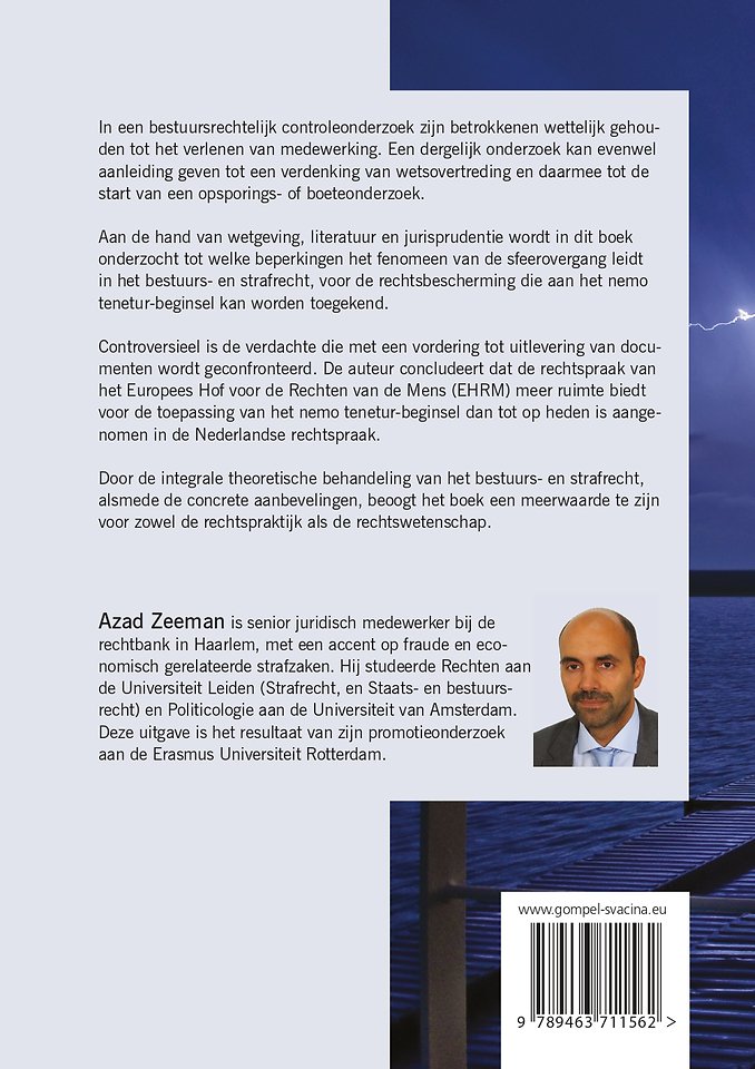 Aan de hand van wetgeving, literatuur en jurisprudentie wordt in dit boek onderzocht tot welke beperkingen het fenomeen van de sfeerovergang leidt in het bestuurs- en strafrecht, voor de rechtsbescherming die aan het nemo tenetur-beginsel kan worden toegekend.