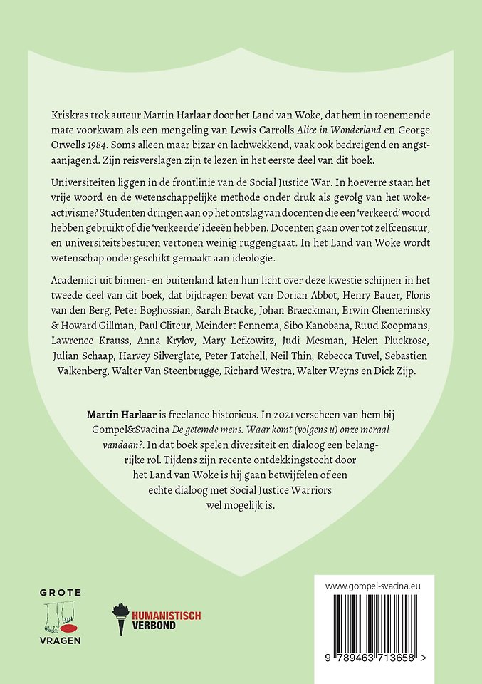 Martin Harlaar is freelance historicus. In 2021 verscheen van hem De getemde mens. Waar komt (volgens u) onze moraal vandaan?. In dat boek spelen diversiteit en dialoog een belangrijke rol. Tijdens zijn recente ontdekkingstocht door het Land van Woke is hij gaan betwijfelen of een echte dialoog met Social Justice Warriors wel mogelijk is.