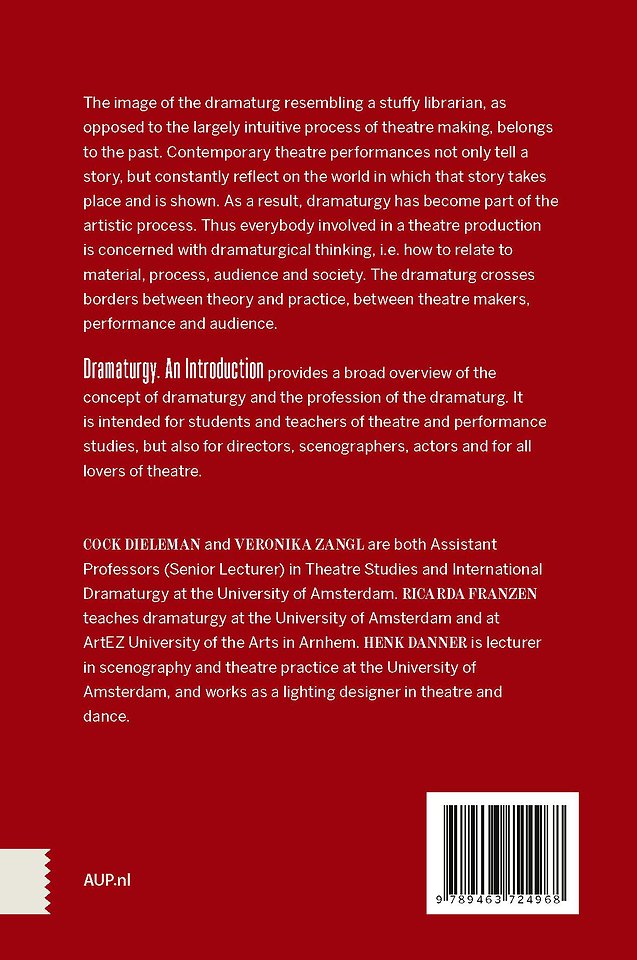 'Dramaturgy. An Introduction' provides a broad overview of the concept of dramaturgy and the profession of the dramaturg. It is intended for students and teachers of theatre and performance studies, but also for directors, scenographers, actors and for all lovers of theatre.