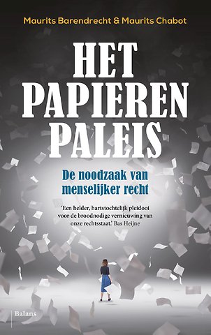 In 'Het papieren paleis' schetsen Barendrecht en Chabot nieuwe routes naar rechtvaardigheid. Die leiden hen van het Vredespaleis in Den Haag tot de kinderrechter, en van gidsland Rwanda tot Belgische vrederechters. Rechtspreken, concluderen ze, gebeurt niet óver, maar tússen mensen. Met een rechtspraak die mensen samenbrengt, in plaats van ze uit elkaar te spelen.