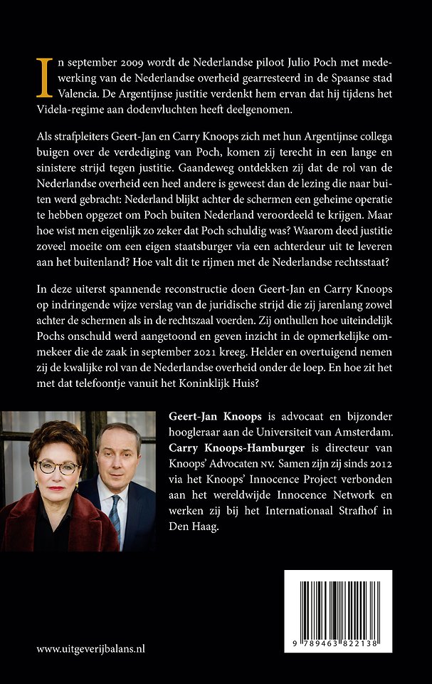 Als strafpleiters Geert-Jan en Carry Knoops zich met hun Argentijnse collega buigen over de verdediging van Poch, komen zij terecht in een lange en sinistere strijd tegen justitie. Gaandeweg ontdekken zij dat de rol van de Nederlandse overheid een heel andere is geweest dan de lezing die naar buiten werd gebracht: Nederland blijkt achter de schermen een geheime operatie te hebben opgezet om Poch veroordeeld te krijgen. Maar hoe wist Nederland eigenlijk zo zeker dat Poch schuldig was? Waarom deed justitie zoveel moeite om een eigen staatsburger uit te leveren aan het buitenland? Hoe valt dit te rijmen met de Nederlandse rechtsstaat?