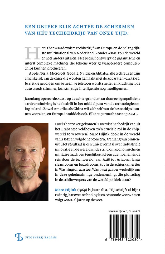 Het resultaat is een adembenemende, zeer toegankelijk geschreven reis door de techwereld, van Azië tot Arizona, langs cleanrooms en boardrooms, tot in de achterkamertjes in Washington aan toe. Naast een bijzonder inside portret van een Nederlands miljardenbedrijf is het een uniek verhaal over industriële innovatie en de wereldwijde strijd om economische en militaire macht. Want wat gaat er werkelijk om in dit geheimzinnige bedrijf, dat zich plotseling in het oog bevindt van de stormachtige wereldpolitiek?