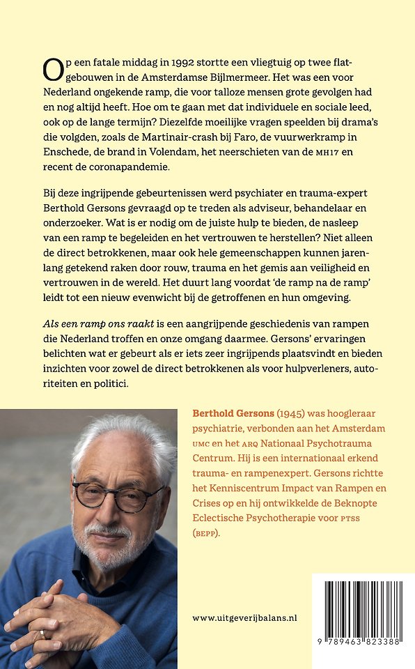 Bij veel van deze ingrijpende gebeurtenissen werd psychiater en traumadeskundige Berthold Gersons gevraagd op te treden als adviseur, behandelaar en onderzoeker. Wat is er nodig om de juiste hulp te bieden, de nasleep van een ramp te begeleiden en het vertrouwen te herstellen? Niet alleen de direct betrokkenen, maar ook hele gemeenschappen kunnen jarenlang getekend raken door rouw, trauma en het gemis aan veiligheid en vertrouwen in de wereld. Het duurt lang voordat ‘de ramp na de ramp’ leidt tot een nieuw evenwicht bij de getroffenen en hun omgeving.