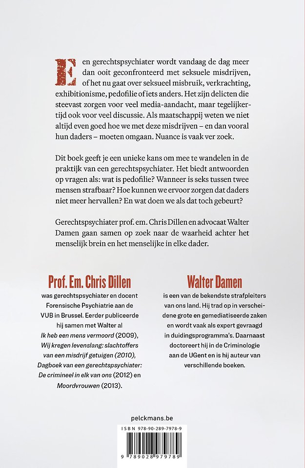 Dit boek geeft je de unieke kans om mee te wandelen in de praktijk van een gerechtspsychiater. Het biedt antwoorden op vragen als: wat is pedofilie? Wanneer is seks tussen twee mensen strafbaar? Hoe kunnen we ervoor zorgen dat daders niet meer hervallen - en wat doen we als dat toch gebeurt?