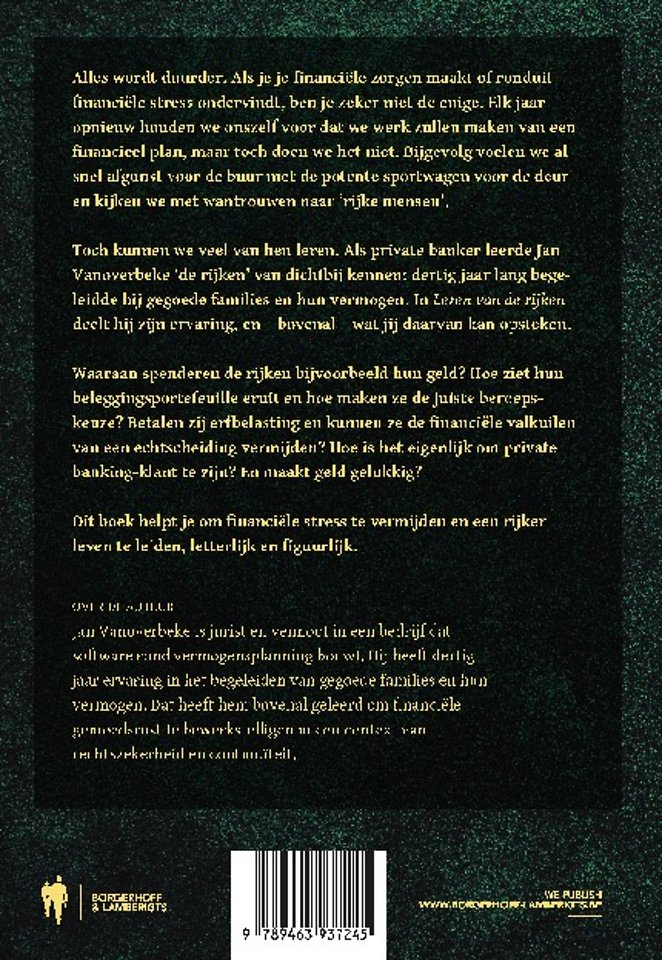 Toch kunnen we veel van hen leren. Als private banker leerde Jan Vanoverbeke "de rijken" van dichtbij kennen: dertig jaar lang begeleidde hij gegoede families en hun vermogen. In Leren van de rijken deelt hij zijn ervaring, en - bovenal - wat jij daarvan kan opsteken.