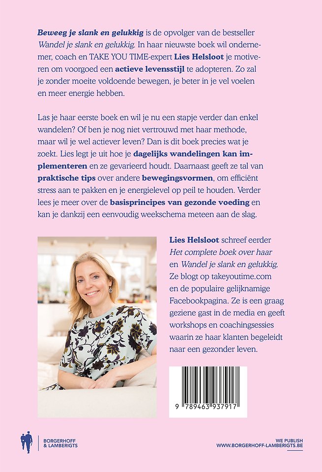 Beweeg je slank en gelukkig geeft je de nodige motivatie en tips om je de actieve levensstijl van Lies Helsloot voorgoed eigen te maken. Dankzij haar methode kom je zonder problemen aan een mooi aantal stappen per dag.