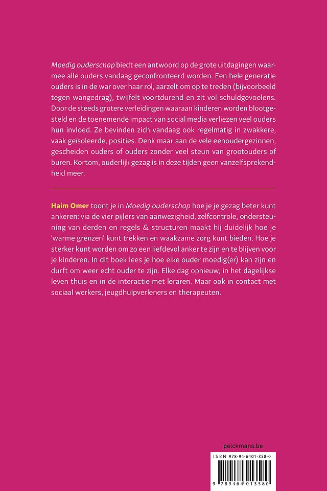 Haim Omer toont je in Moedig ouderschap hoe je je gezag beter kunt ankeren: via de vier pijlers van aanwezigheid, zelfcontrole, ondersteuning van derden en regels & structuren maakt hij duidelijk hoe je ‘warme grenzen’ kunt trekken en waakzame zorg kunt bieden. Hoe je sterker kunt worden om zo een liefdevol anker te zijn en te blijven voor je kinderen. In dit boek lees je hoe elke ouder moedig(er) kan zijn en durft om weer echt ouder te zijn. Elke dag opnieuw, in het dagelijkse leven thuis, en in de interactie met leraren op school. Maar ook in contact met sociaal werkers, jeugdhulpverleners en therapeuten.